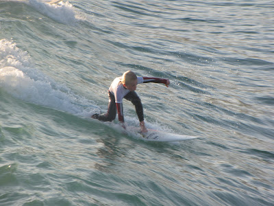 While we were on the pier, I spotted this dad, teaching his kid to surf.
